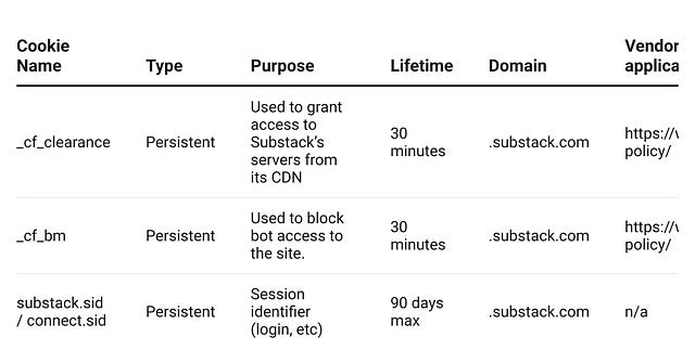 In addition to the cookies Substack uses, Publishers on Substack may choose to set certain tracking and analytics cookies, subject to the Publisher’s own terms and policies. These Publisher cookies may include cookies set by third parties such as Twitter, Facebook, Google, and Parse.ly.
